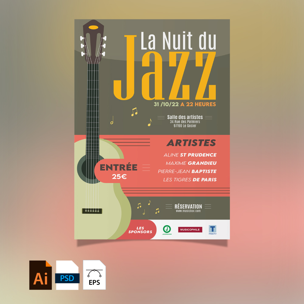 Modèle de flyer vectoriel destiné à promouvoir un événement musical (Concerts ou festivals de musique).